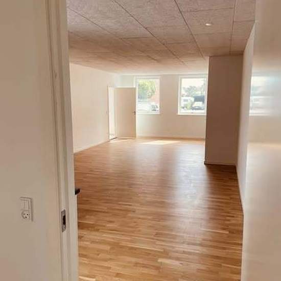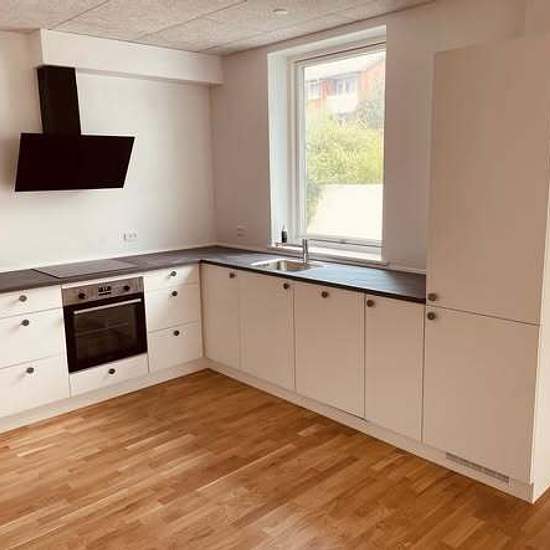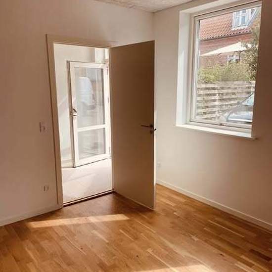 Lovely 2-room apartment on the ground floor, 81 m². Access to its own terrace surrounded by an enclosed garden. There is space for a washer/dryer stack in the bathroom. There is a dishwasher and a fridge/freezer. Private parking right outside the door. The apartment is located in a quiet neighborhood between the town and the train station at 6. Julivej 15. Move-in possible from 1/3-26 Rent: 6,900 DKK Aconto (advance payment) for water/heating: 600 DKK Deposit: 3 months' rent, plus 1 month's rent paid in advance If you would like a viewing,...