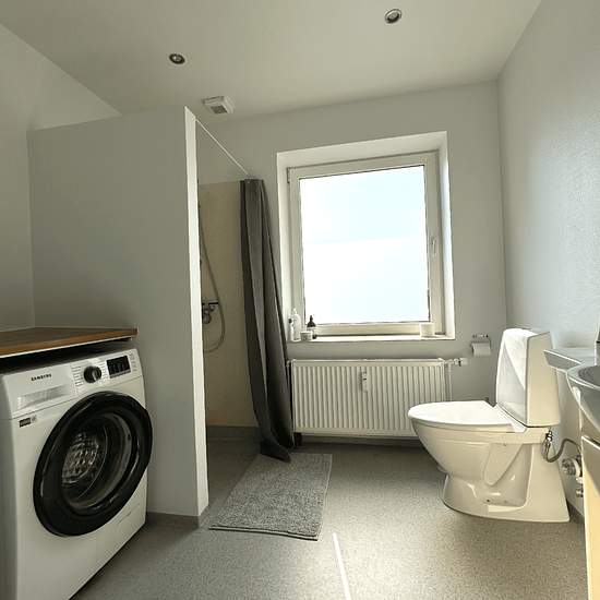 Newly renovated and cozy apartment in Hjørring’s city centre! Layout: The apartment has been modernised with high-quality solutions and bright rooms thanks to the large windows. You get a large and spacious entrance hall with plenty of room for outerwear and storage. A large bathroom with a separate shower cubicle and space to install your own washing machine and tumble dryer. The kitchen is large and bright with a dishwasher. You also have a balcony accessed from the kitchen – here you have ample opportunity to enjoy the sun. From the kit...