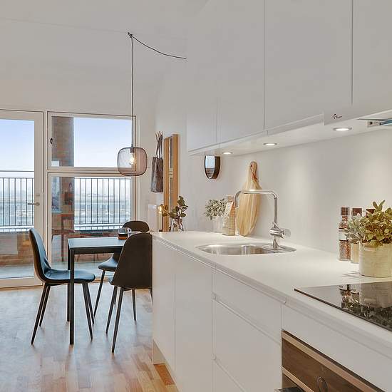 Rent a home in Skejbyen with room for privacy and community Skejbyen is for anyone dreaming of a home in Risskov in northern Aarhus. Here you can feel at home while also being part of an area where sport, culture, nature and community are the focal points. You get a lovely home with a good layout as well as small charming details that make the apartment homely and everyday life easier. A modern rental apartment in Risskov with minimal wasted space As soon as you step into the apartment in Skejbyen, you are greeted by a wonderful influx of li...