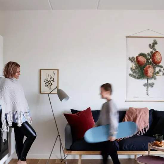 The apartment Well-laid-out 2-room apartment. Lovely large living room with access to a north-facing balcony. Modern white Invita kitchen with good cabinet space and built-in appliances from Gram, including a dishwasher. Bedroom with built-in wardrobes. Spacious and inviting bathroom with tiles on the floor and in the shower niche, as well as underfloor heating. Molded sink, wall-hung toilet and stacked washer/dryer. Beautiful oak lamella parquet floors with matte lacquer and underfloor heating. It is possible to apply for pet permission in ...