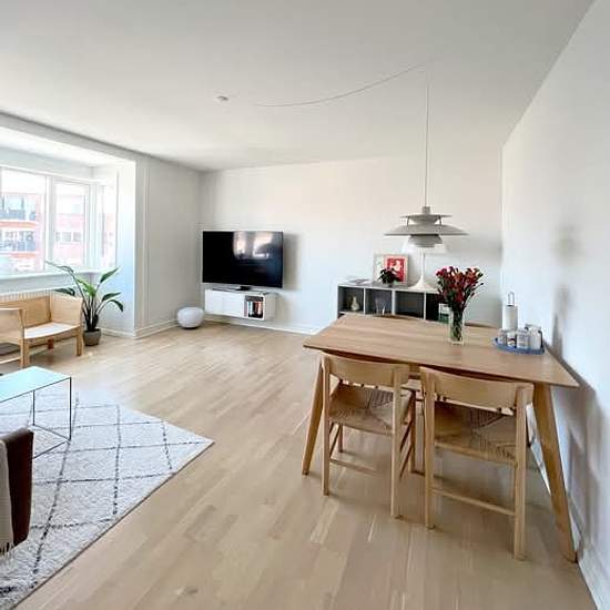 # **NYRENOVERET LEJLIGHED MED UDSIGT TIL FJORDEN** Flot nyrenoveret **3-værelses lejlighed** med nyt **HTH-inventar** og fantastisk udsigt mod **Limfjorden**. Lejligheden byder på en **stor og lys stue**, et **soveværelse med indbyggede skabe**, et moderne **HTH-køkken med opvaskemaskine**, samt et **stort badeværelse med separat bruseniche**. Derudover får du et ekstra værelse, som kan bruges som **børneværelse, kontor eller gæsteværelse** ────────── Her får du blandt andet: Opvaskemaskine Vaskefaciliteter Depotrum Mulighed for par...