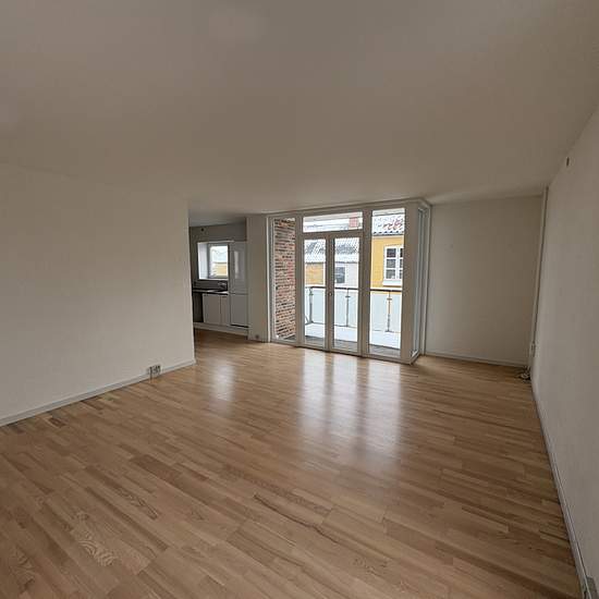 The apartment on Storegade is located in the middle of Broager — and only a stone's throw from shopping and public transport. The apartment is laid out with two rooms, a bathroom, a utility room and a large open-plan kitchen/living area with access to two balconies. There is an elevator in the building. You can see a video of the apartment by clicking here