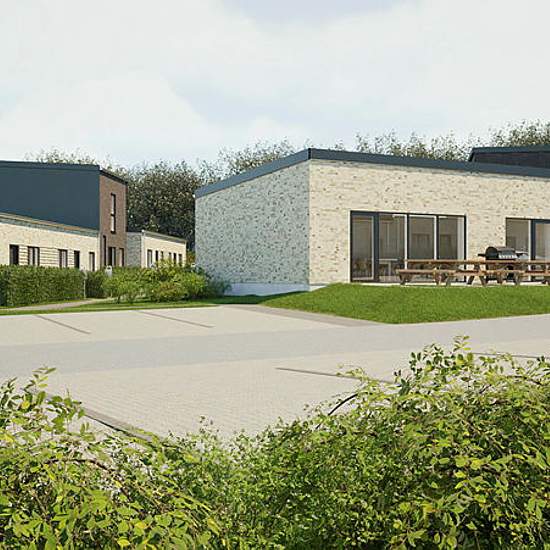 Kirketerp II - Moderne og seniorvenlige familieboliger i fredeligt og naturskønt område udenfor Hobro Ca. 2 km. fra Hobro centrum ligger "Kirketerp II", en flot nybygget afdeling med velindrettede og lyse rækkehuse, omgivet af skovbryn, åbne marker og et godt netværk af stier. Størstedelen af boligerne er opført som ét plans rækkehuse. Dog er de store 5- værelses boliger i 2 plan. Boligerne er opført som 3 - og 5-værelses rækkehuse og varierer i størrelsen 67-102 m2. Hver bolig har egen flisebelagt terrasse med udgang fra stuen, hvorfra...