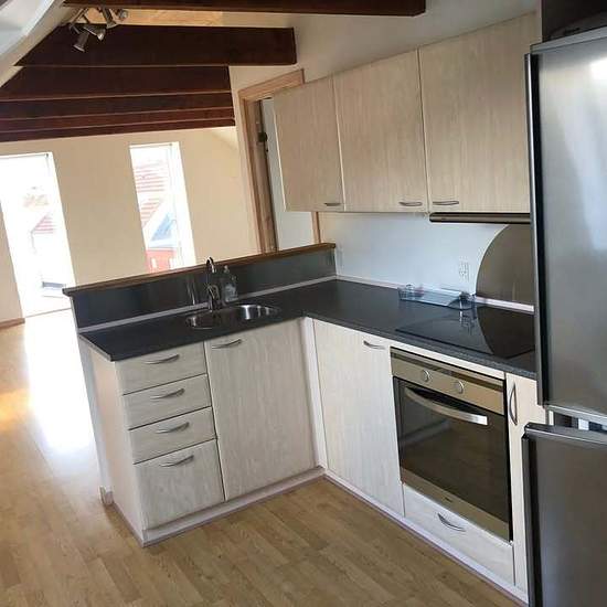 Beautiful and charming 3-room apartment in the center of Lemvig available for rent soon to a quiet tenant. The apartment, located on the first floor, has a large entrance, an open kitchen/living room, a spacious bathroom, and 2 large bedrooms. There is a shared courtyard with parking, a small terrace, and a communal storage shed. Parking is available in the courtyard. Heating and electricity are billed directly with the utility company. Advance water payment is 350 DKK. For a quiet tenant. Smoking and pets are not allowed.