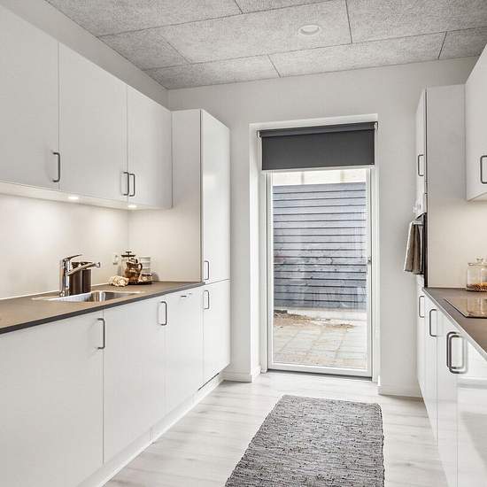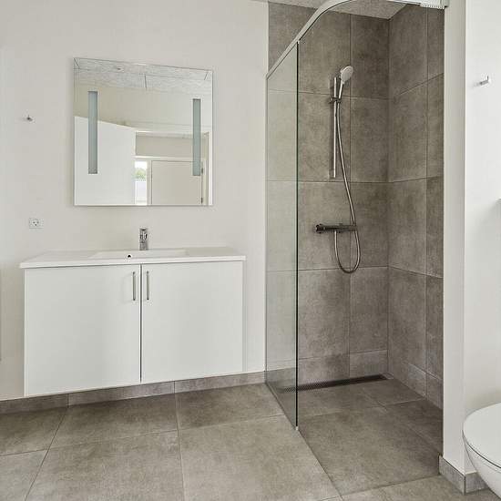 Note: It is a requirement that tenants of this rental be 55+ years and have no children living at home. All the terraced houses are single-story. You enter into an entrance hall tiled with ceramics. Here you will find a washing machine and tumble dryer as well as plenty of cupboard space and a countertop with a sink. There is a large, bright open-plan kitchen and living area. The bathroom has light-colored fixtures, a separate shower enclosure, and a cabinet. Depending on the size of the property, there are 2 or 3 rooms/bedrooms. One of the...