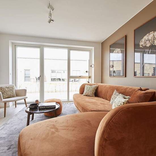 Rækkehus indrettet med særskilt entre med direkte adgang til stort køkkenalrum og stue i ét. Her er store glaspartier i begge ender af rummet, hvilket giver en gennemstrømning af naturligt lys. I midten af rummet er placeret det moderne og lyse køkken, hvor der på begge sider heraf er god plads til spisebord samt hyggelig stue. Fra køkkenalrum er videre adgang til stort soveværelse med skabsvæg, værelse, særskilt bryggers samt badeværelse. Have: Egen have og terrasse Udhuse: Redskabsrum 7m² Parkering: Fælles parkering Al forbrug afregnes di...