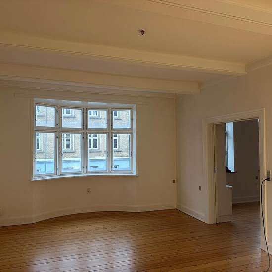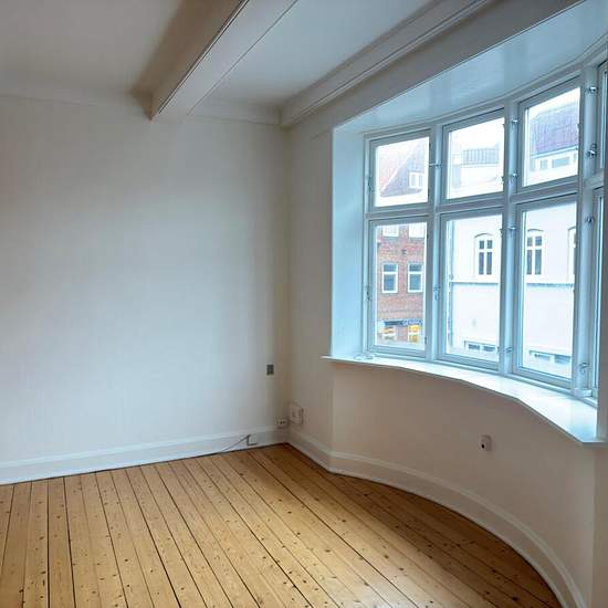Velkommen til en indflytningsklar lejlighed på hele 147 m2, hvor klassiske detaljer møder en opdateret og hverdagsvenlig indretning. Her får du tre regulære værelser fordelt på en stor stue og to gode værelser, masser af indbygget opbevaring samt direkte adgang til en privat tagterrasse med kig over byens tage. Opholdszonen er lys og indbydende med originale plankegulve, hvide vægge og smukke, synlige bjælker. Stuen samler hjemmet og rummer nemt både sofa- og spiseafdeling. Den fine karnap med stort vinduesparti giver et behageligt lysindfa...