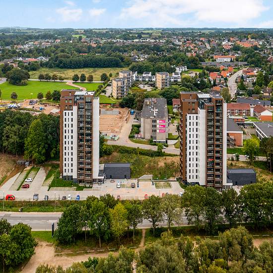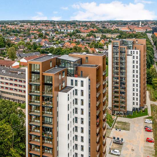 The property Step into a world of elegance and community at Fjordbrynet, where two slender towers reach toward the sky and form the setting for 104 unique residences. With 52 homes in each tower, this place exudes vitality and a sense of community. The impressive architecture and location on Kolding Fjord give you not just a home, but an oasis of calm and beauty. The residences Feel the light pour in through the large windows of these spacious and modern residences, which range from 77 to 157 square meters. Each home is carefully designed w...