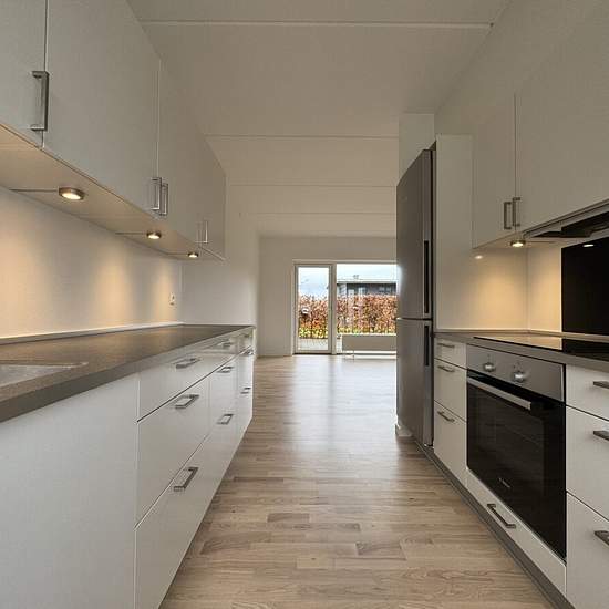 Are you dreaming of a modern and inviting apartment with plenty of space and nature right outside the door? Then this lovely apartment on Skibhusengen in Odense is an obvious choice. The apartment measures a full 112 m² and is on the ground floor with direct access to both a garden and a terrace – perfect for relaxing, barbecues, or children’s play. The apartment offers a lovely, large and bright living room with large windows that provide beautiful natural light and a lovely view of the surrounding nature. In addition, you get a separate ...