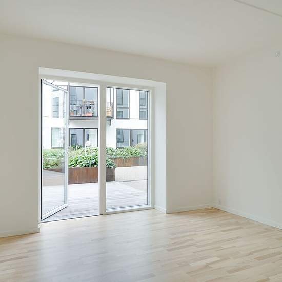 Modern and stylish apartment centrally located in Valby In the heart of Valby you will find this newly built property that houses a lovely apartment. Here you can look forward to an optimal layout and tasteful material choices, and with this number of rooms the home is ideal for both a couple and the small family. The striking building is constructed with a brick facade and metal panels on the top floor, which give the development a raw edge. Outside you will notice the generous window sections as well as the balconies that break up the fa...