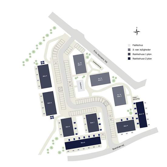 På Friis Hansens Vej i Vejle præsenterer vi nogle skønne, nybyggede lejligheder og rækkehuse for alle. Lejlighederne rummer to separate værelser samt et rummeligt køkken-alrum. Alle lejligheder får et depotrum i selve lejligheden, samt egen altan eller terrasse. Der er naturligvis elevator i bygningen. Rækkehusene er i enten ét og to plan, og her får du tre separate værelser. Udenfor er der skur til hvert lejemål samt privat terrasse. Der er fri, fælles parkering på ejendommen, og der er ladestandere til rådighed. Hårde hvidevarer Du får ...