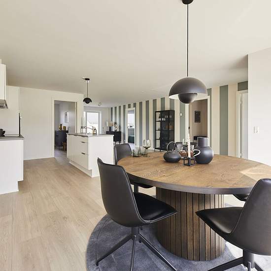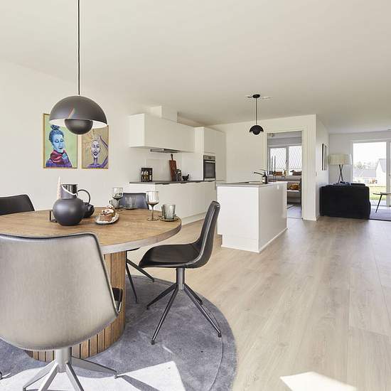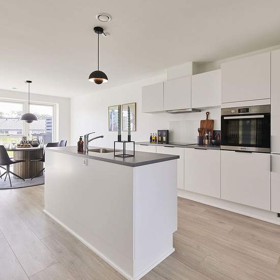 På Ida Nielsens Vej finder du dette indbydende 4-værelses dobbelthus på 115 m² – opført i 2023 og skabt til et moderne hverdagsliv med plads, lys og ro. Her er der tænkt over både funktion og atmosfære, så hjemmet føles lige så rart, som det er praktisk. Når hverdagen samles Boligens hjerte er det store, åbne køkken-alrum og stue, hvor rummeligheden og det naturlige lys skaber en let og imødekommende stemning. Her er der plads til både lange middage, leg på gulvet og rolige aftener i sofaen. Køkkenet fremstår stilrent og moderne med gode a...