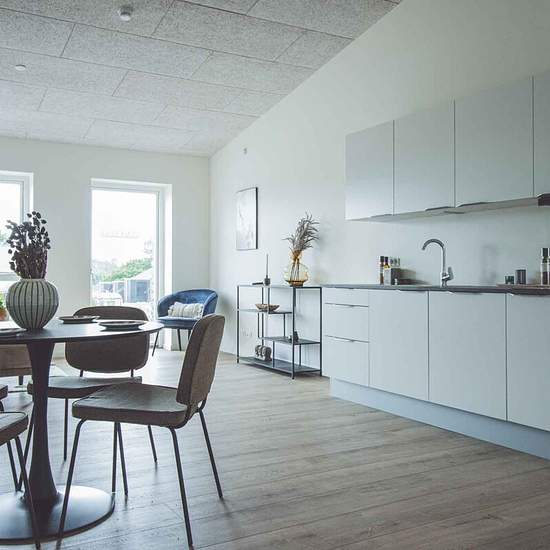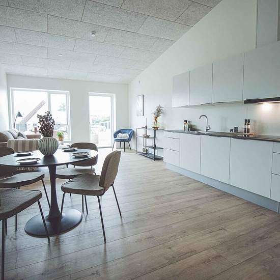 Terraced house with 4 rooms for rent in Sejling, Silkeborg. Here you get a large open-plan kitchen and living room, three good bedrooms, a bathroom as well as a private terrace and parking by the home. Lovely four-room terraced house with an integrated kitchen, dining and living area, three bedrooms, a bathroom and a private terrace. Kitchen and living room The heart of the home is the central kitchen-dining area, which features a sleek and bright kitchen with an island and all major appliances. The dining area also has room for a dining ta...