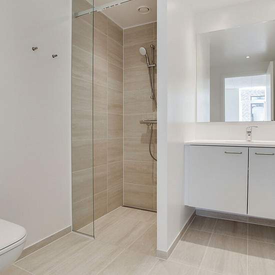 All the terraced houses at Rapsvænget 4 to 41 are single-storey and measure between 100 and 103 sqm. You enter the home's entrance hall, from which you continue into the spacious open-plan kitchen/living area. Some homes have a large kitchen island, which can also serve as a dining area. In addition, you get three separate rooms and a good bathroom. Some homes have a utility room; others have the stacked washer/dryer located in the entrance hall. There is underfloor heating in all rooms. All homes have a private garden with a lawn, beech he...