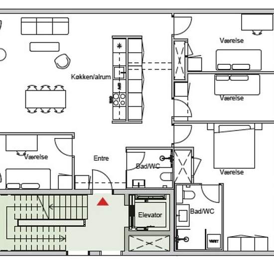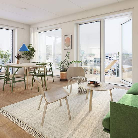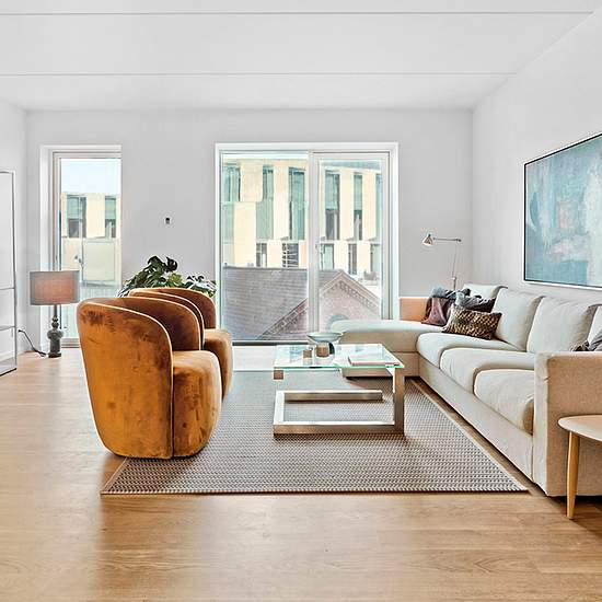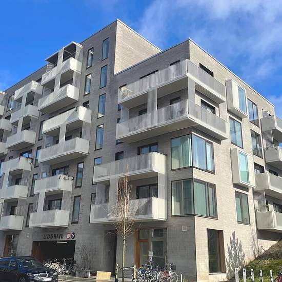 Lovely and new — and 2 bathrooms. This lovely 5-room apartment, which has 2 bathrooms, is located in the new development Livas Have in Frederiksberg. Close to everything – vibrant city life and green oases such as Grøndals Park and Frederiksberg Garden. For the children, KU.BE and Flintholm swimming pool are a stone's throw away. There is also a short distance to metro, train and bus, shopping, cafés, as well as schools and institutions. Livas Have is an ambitious development, designed by the architects at Holscher Nordberg, with high stan...