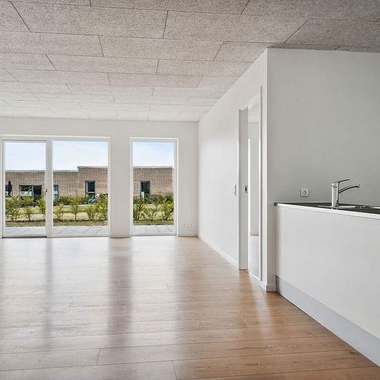 At Kobbelvænget in Vejle we rent 2-, 3-, 4- and 5-room terraced houses on one or two levels. The terraced houses have a terrace area as well as a small paved front garden with a carport. The terraced houses are heated by underfloor heating. Appliances All major appliances are included. Pets Pets are allowed. See our general pet rules here. Parking There is private parking in front of the home. Common areas For all residents there is outdoor fitness and a playground for the youngest residents. Read more about the property The photos sho...