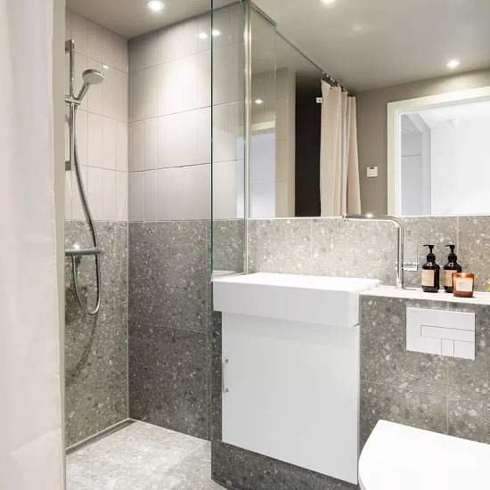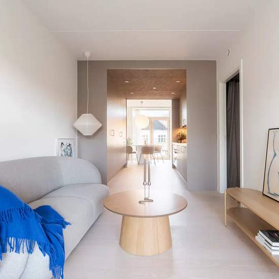 A co-housing community for adults in Højbjerg. Ideal for singles or a couple seeking scenic natural surroundings. This well-maintained home offers an open living room and kitchen area with plenty of natural light. The kitchen is fully equipped with modern appliances, while the living room has large windows that provide lovely light. In addition, you will find a spacious bedroom and a stylish bathroom with space for a stacked washer and dryer. The kitchens are sand-colored from HTH and include a dishwasher, fridge-freezer and much more, with...