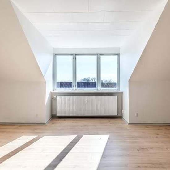 Now you have the opportunity to live in a bright and lovely newly renovated top-floor apartment in the middle of Grenaa with views over the town's roofs Size: 3-room apartment of 101 sqm Layout: Bright and lovely newly renovated apartment with new wooden flooring and new carpets in the rooms. Nice bathroom with its own washing machine, large and fine kitchen. Bedroom with wardrobes. The apartment is non-smoking and pets are not allowed. There are shared courtyard areas as well as a bike shed; additionally there is the option to purchase par...