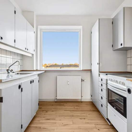 This spacious and well-laid-out 4-room apartment is located on Solbakken in Hadsund. The apartment offers a large, bright living room with generous windows that provide good natural light and plenty of space for both living and dining areas. The floor plan is good and provides a natural separation between the common areas and the bedrooms. The residence includes three full-sized rooms, all of which are easy to furnish and can be used flexibly—whether you need children's rooms, a bedroom, an office, or a guest room. The kitchen is centrally...