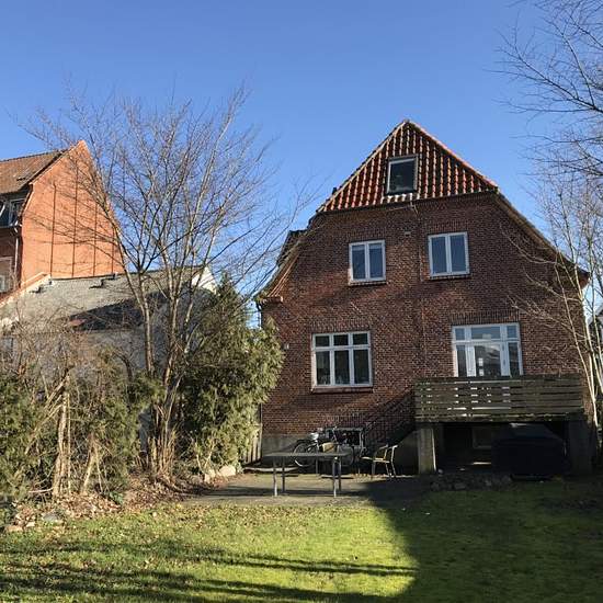 Stor delevenlig lejlighed i 2 plan med adgang til stor have og privat parkering