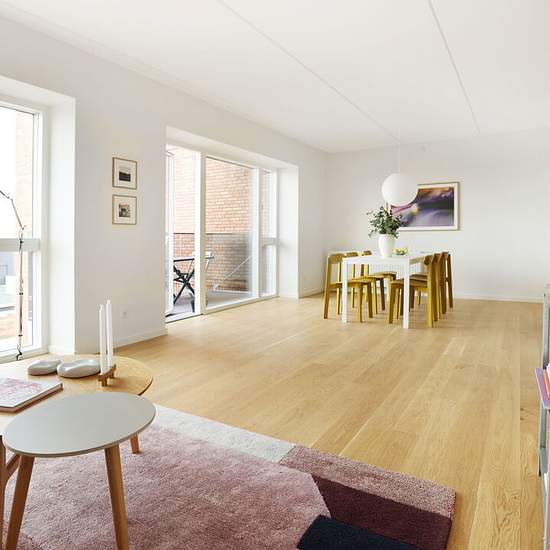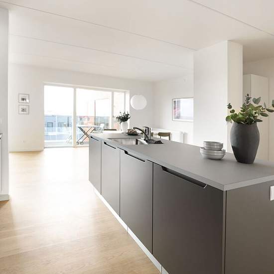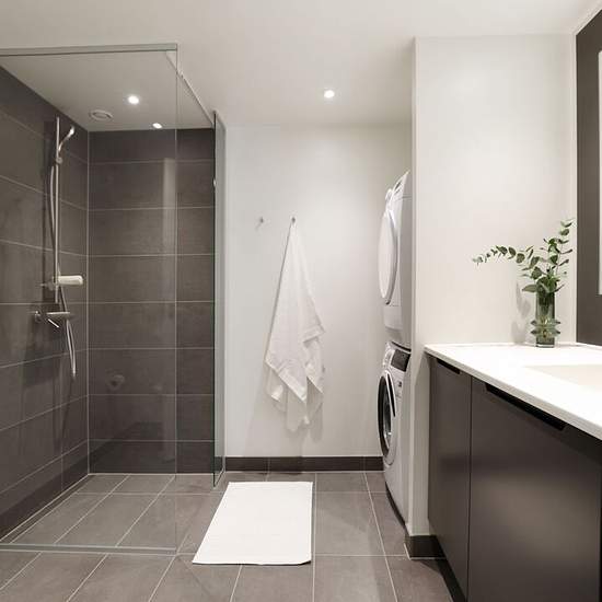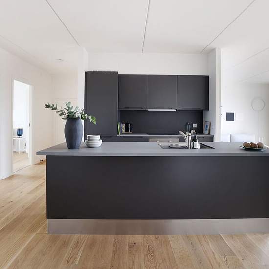 The residence This large and spacious 5-room apartment is ideal for a family or those who want extra space. The home has a large, bright living room open to the modern lava-gray kitchen, which is equipped with integrated appliances. The four rooms offer flexible furnishing possibilities, whether you need additional bedrooms, a home office or a multipurpose room. The bathroom is fitted with a shower niche and practical laundry facilities, and the apartment also has a guest toilet for extra everyday comfort. Depending on the apartment’s locati...