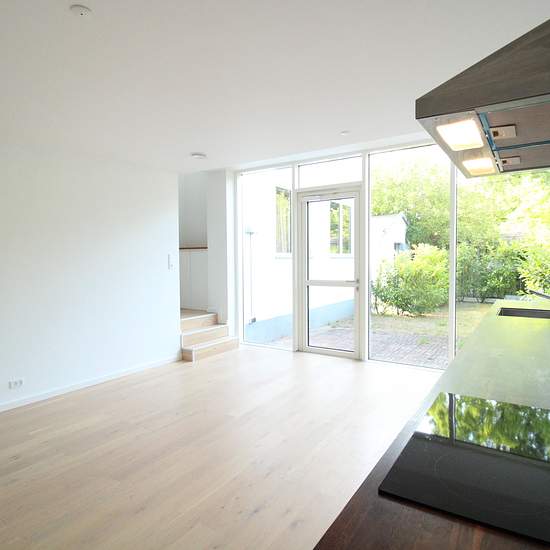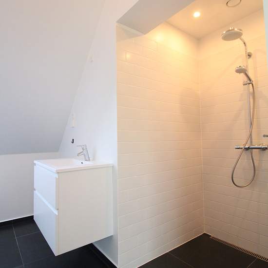 The home appears bright and inviting and is filled with light from large, well-placed window sections. There are light floors throughout the entire residence. The kitchen is finished in a modern style with light units, a darker countertop and plenty of work surface for culinary pursuits, and functions as the home’s natural gathering point. The rooms are all of good, practical and usable sizes, allowing for different types of furnishings. The bathroom is bright and spacious and appears modern with a darker stone floor. The apartment has a...